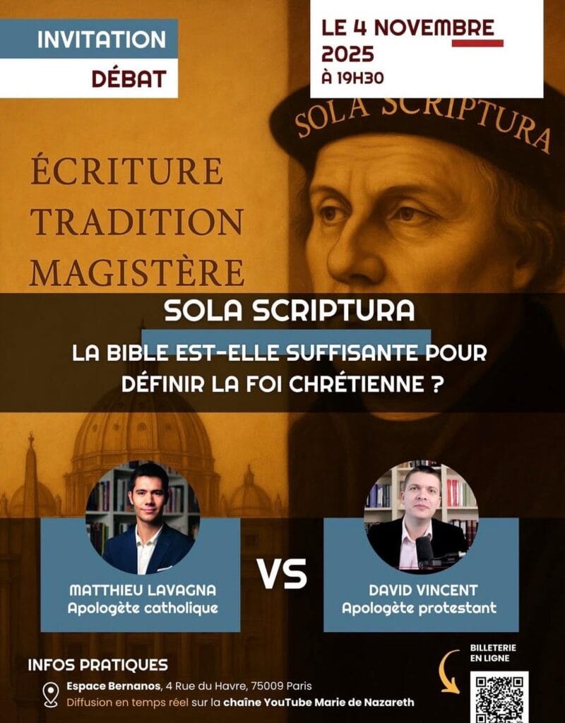 David Vincent, membre de Science & Foi qui anime la chaine Youtube Didascale participera à une discussion avec l’apologète catholique Matthieu Lavagna sur le thème de l’autorité des Ecritures :